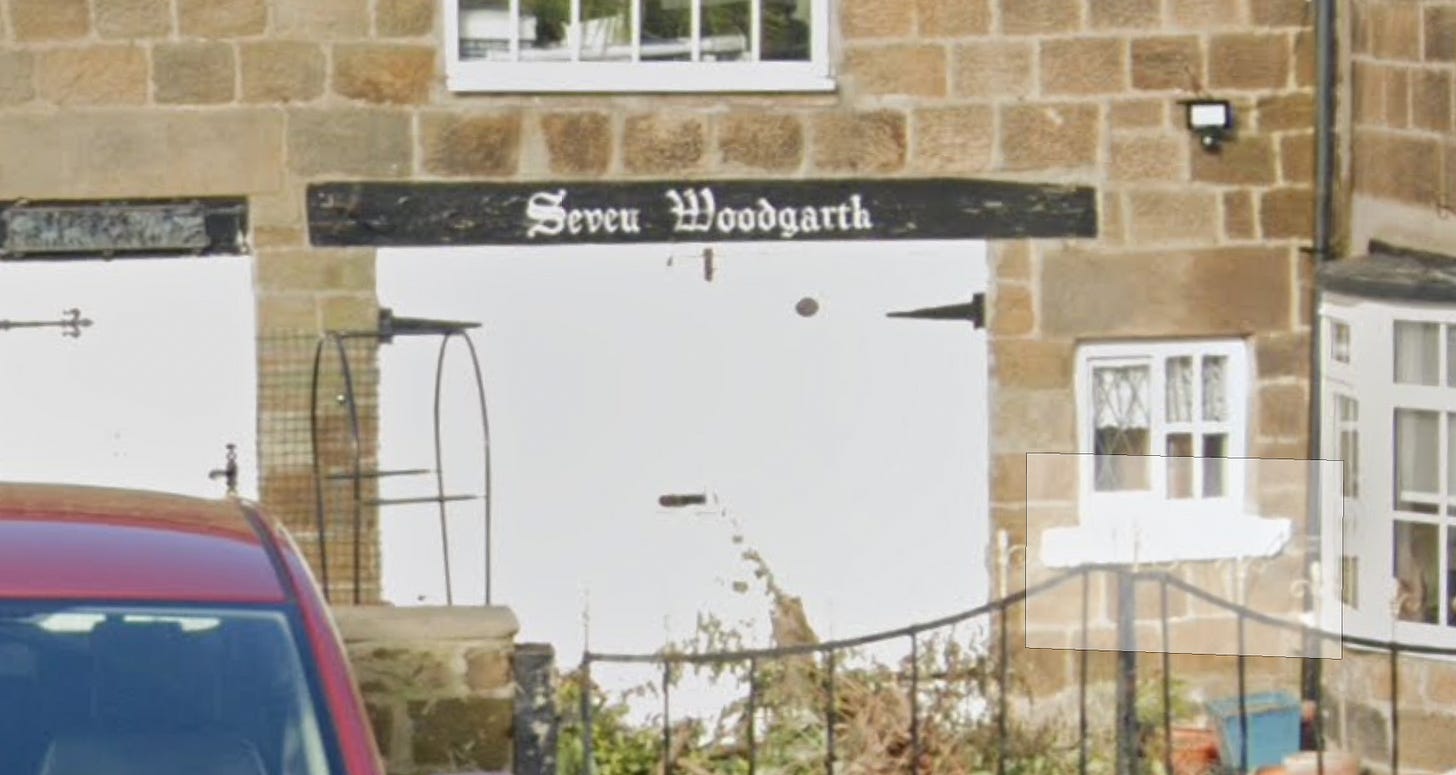 I did (and still do) have some form of mountainous, deep-seated horror when it came to what I perceived as the ‘paranormal’. Growing up I lived in a very old house in Middlesbrough, apparently built in the 1600s. It was made of sandstone. It had no back garden but one at the front, all concrete patio and sections of soil where great quantities of plants sprung from. The garden was honestly like a jungle, especially to someone that small. The house sat in an L shape, with the other two sides squared by garden walls and a gate leading out into the neighbourhood. Looking into the garden through the gate you could see the garage (never used for cars, more a glorified potting shed for my dad’s horticultural obsessions) below a set of windows behind which sat my parents’ bedroom. Separating the two was a sign my dad painted with the house’s name on it; Seven Woodgarth.